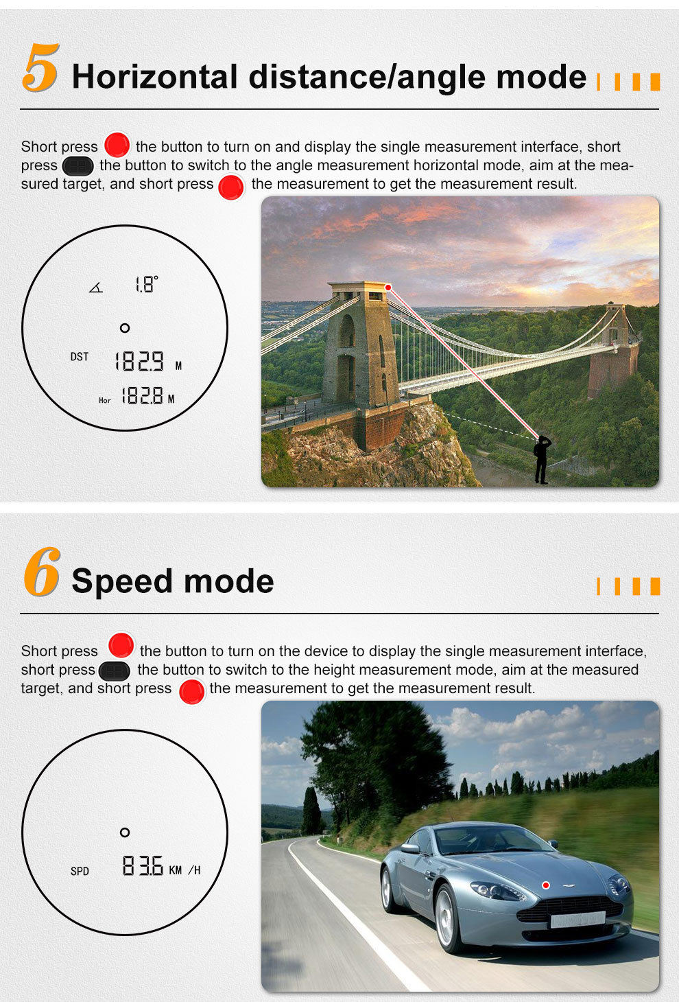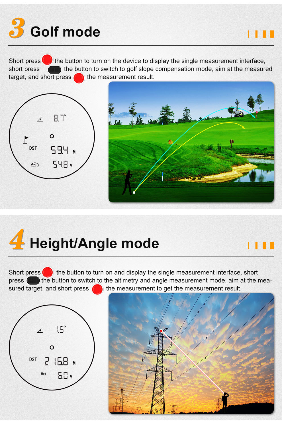Function: Golf version: 1. Distance measurement mode; 2 Golf ramp correction mode;