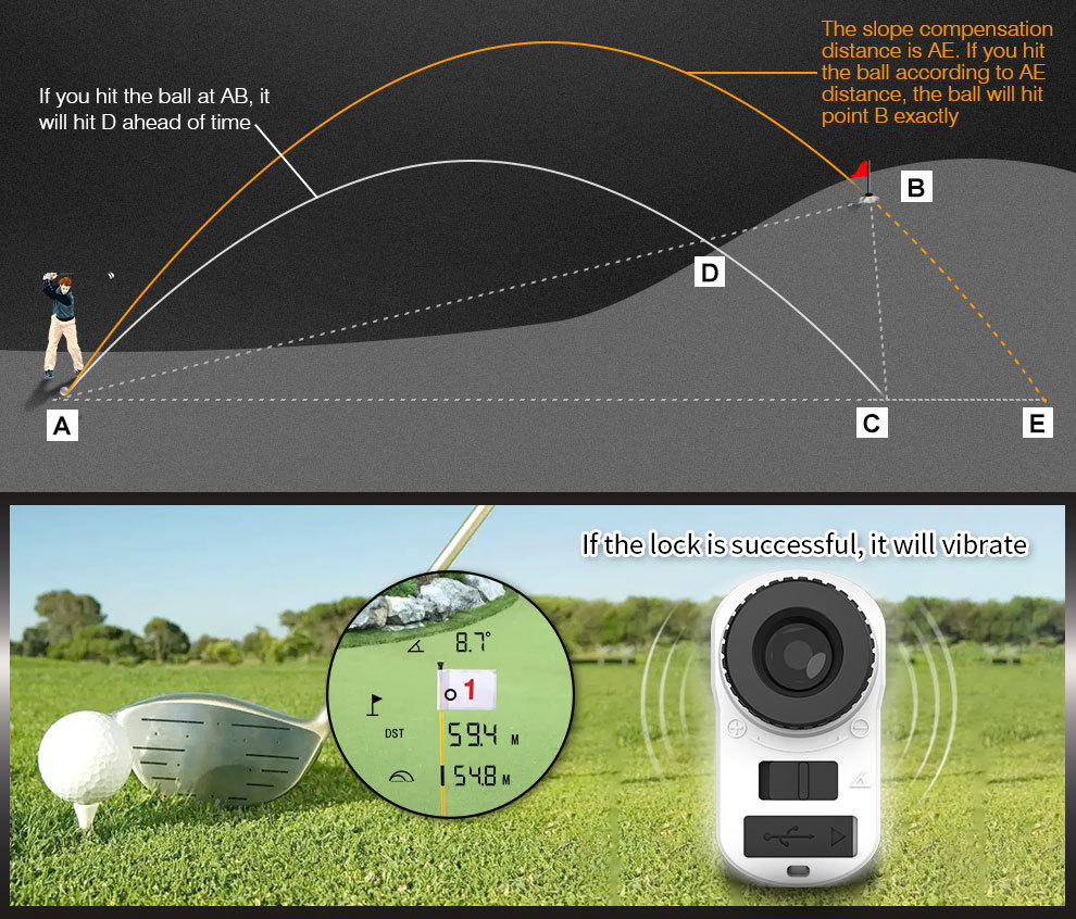 Full featured model: 1. Distance measurement mode; 2 Golf Hill Correction Mode