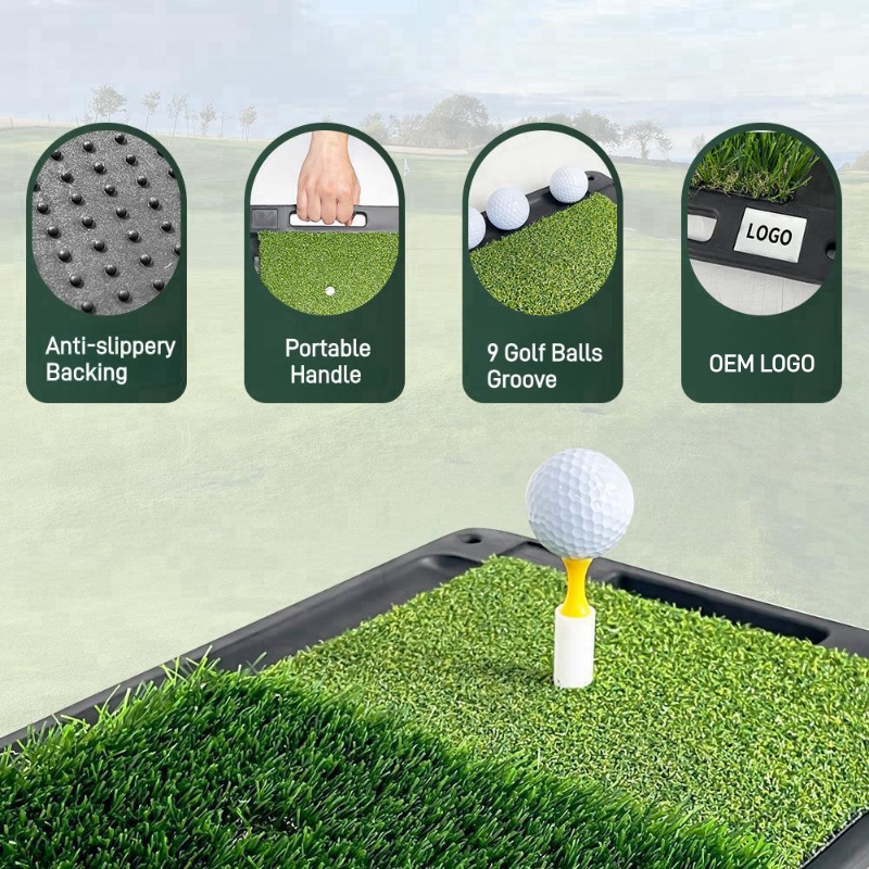 2. Dual turf design: The golf mat has one long grass surface and one short grass surface, the long ones suitable for chipping and the short ones for swinging.