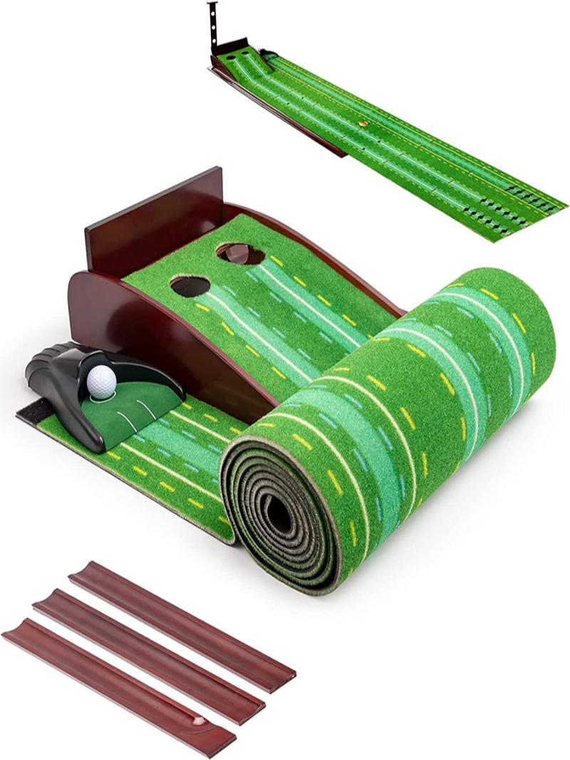 2. Golf putting mat with auto ball return system: This golf putting mat simulates the design of the golf course's ramp and automatic ball return system can return the ball to the hitting point, which could save your practice time significantly.