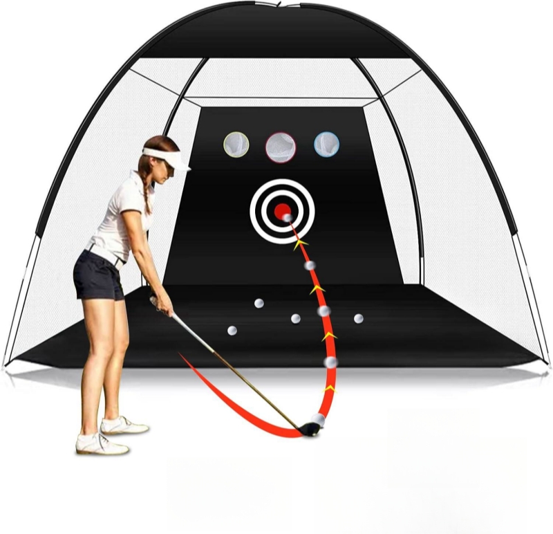 1. All in one golf hitting training net: Our practice net with hitting mat is an ideal golf training equipment to practice your skills like Driving, Swing and Chipping, etc. An outstanding way to practice every club in your golf bag easily at home / outdoor, saving money and time.