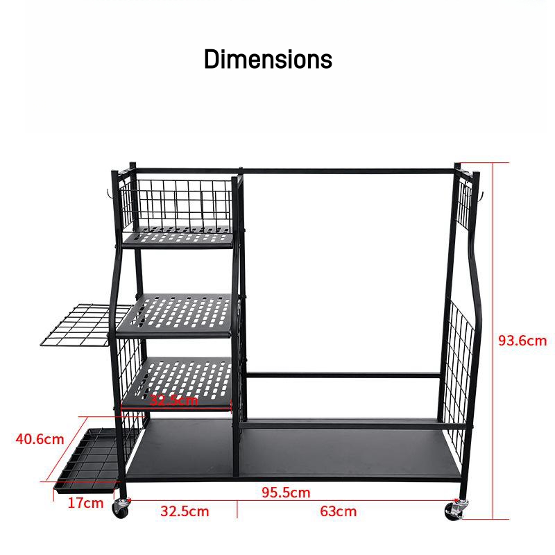 2. Solf edge design: The garage storage stand is designed with soft edge to protect your golf bag from scratches. And the bottom of dual golf bag storage stand is hole steel board, which is more sturdy and durable than the net rack.