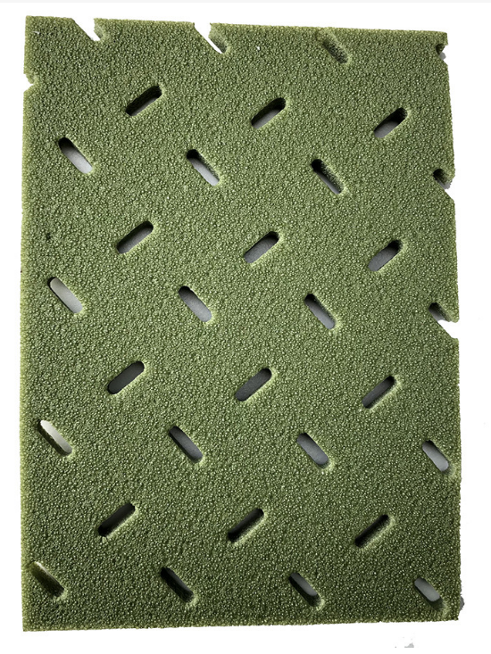 Our shock pad is a synthetic elastomer that can absorb impact under the artificial turf. It has high impact absorption, good drainage and moisturizing performance.